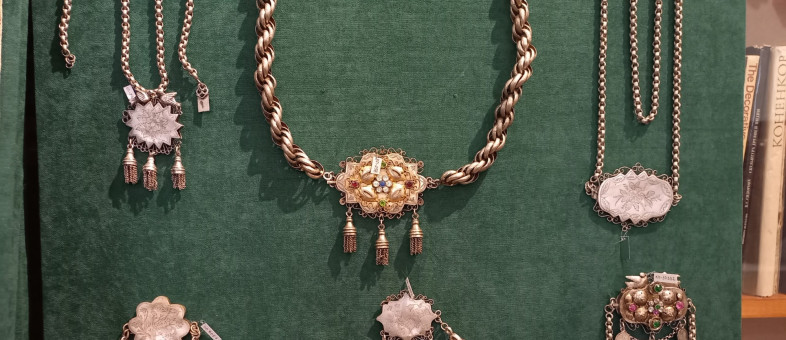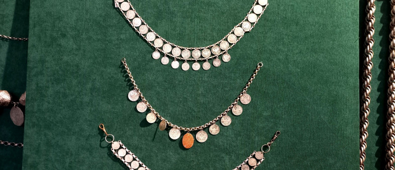 Выставка «По платью видно, кто идёт» покажет цепи разнообразного плетения с подвесками в виде колокольчиков и монет, украшения из крупных полых бусин, ожерелья с листовидными подвесками, браслеты и серьги.