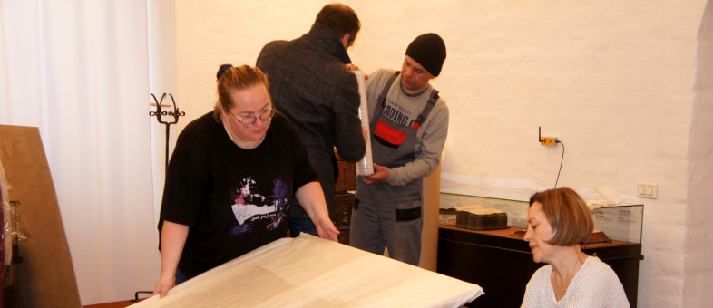 «Работа ведётся в залах Трапезной палаты и Архимандричьих келий. Именно в этих памятниках архитектуры находятся постоянные экспозиции «История Кирилло-Белозерского монастыря и близ лежащих обителей», «Древнерусское искусство XV-XVII веков», «Ремесло и шедевры», уникальные экспонаты из которых будут представлены на выставке в Ризнице Троице-Сергиевой лавры уже 13 марта, – рассказывает заведующая экспозиционно-выставочным отделом Кирилло-Белозерского музея-заповедника Юлия Лебедева. – В их числе: покровы и пелены с изображением преподобного Кирилла Белозерского, основателя монастыря, святого и чудотворца, датированные 1587 и 1598 годами, являющиеся вкладом Софьи Голицыной и Марии Нагой; пелены XVI и XVII столетий «Троица» и «Явление Богоматери преподобному Кириллу Белозерскому» – вклады царицы Анастасии Романовны и бояр Сулешевых; фелонь, стихарь и саккос XIX века… Все они расшиты золотными, серебряными и шелковыми нитями».
