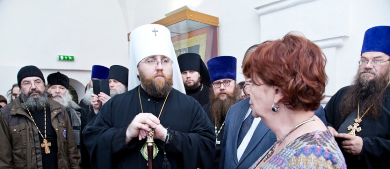 Тогда в Кириллов впервые за сто лет были привезены святыни преподобного Кирилла Белозерского, находящиеся в собрании Государственной Третьяковской галереи: это прижизненный образ преподобного Кирилла и принадлежавшая ему икона «Богородица Одигитрия».