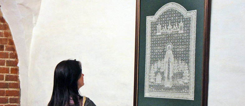 Кружевные панно с изображением памятников архитектуры, фрагменты рисунков и плетения, коклюшки и пяльцы – всего более сорока уникальных экспонатов из фонда Кирилло-Белозерского музея-заповедника показаны на выставке в Череповце.