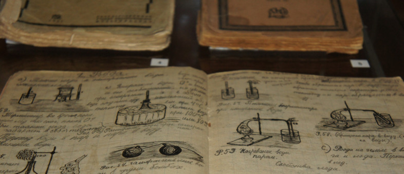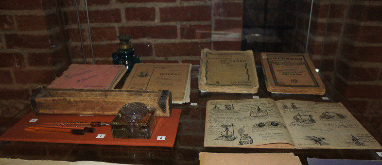Интерес представляет «Арифметический задачник» для начальных городских и сельских училищ, изданный в 1897 году. Все задачи в нём прикладные – про урожай, товары, зарплаты. По этим примерам легко представить, чем люди жили в те времена. В одной из витрин показаны тетради Георгия Георгиевича Антипина, участника Великой Отечественной войны, сотрудника Кирилло-Белозерского музея и Государственного исторического музея в 1930 году. Тетради по природоведению, естествознанию и механике поступили в дар в 80-е годы XX века».