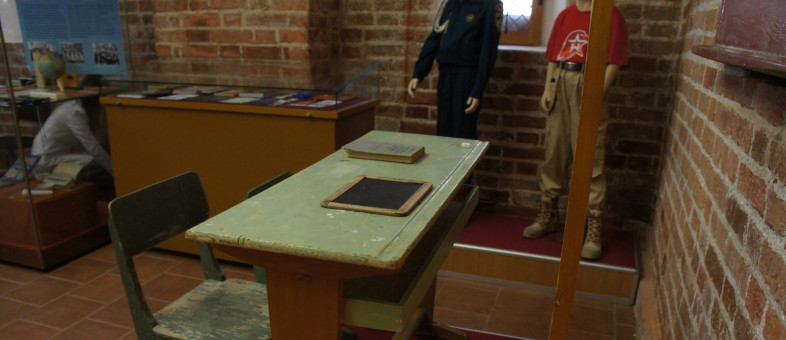 «Первую витрину назвали по известному рассказу Льва Николаевича Толстого «Филипок», – рассказывает заведующая экспозиционно-выставочным отделом Кирилло-Белозерского музея-заповедника Юлия Лебедева. – Это история о первом образовании в сельских школах. Далее раскрываем 30-40 годы – показываем учебные пособия, по которым можно понять, что в те годы преподавалось в школах. Это арифметика, география, физика, химия… Говорим о периоде 60-70-х… Отдельно выделяем блок комсомольской и пионерской организаций, которые в настоящее время переродились в новые школьные молодежные движения – кадетские классы и юнармию. Именно поэтому в торжественном открытии выставки активное участие сегодня принимали современные кадеты – учащиеся Кирилловской средней школы имени Героя Советского Союза А.Г. Обухова».