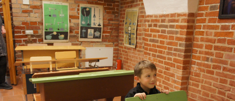Сюрпризом для посетителей выставки стал интерактивный класс, устроенный в экспозиции Кирилло-Белозерского музея-заповедника, где любой желающий сможет посидеть за зелёной деревянной партой, полистать учебники и атласы, разглядеть портреты великих путешественников на стенах импровизированного класса, написать мелом на доске и представить себя в роли ученика из прошлого столетия.