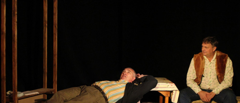 Вы увидите постановку по шести рассказам Василия Макаровича: «Воскресная тоска», «Раскас», «Забуксовал», «Космос, нервная система и шмат сала», «Дядя Ермолай» и «Охота жить». Данный спектакль стал новой совместной работой В. Чубенко и О. Емельянова. Нельзя сказать, что кто-то в этом спектакле из них играет ведущую роль, ведь все этапы подготовки «Охоты жить» друзья производили вместе: здесь и режиссура, и актёрское воплощение, подборка музыкального сопровождения, и даже изготовление декораций!