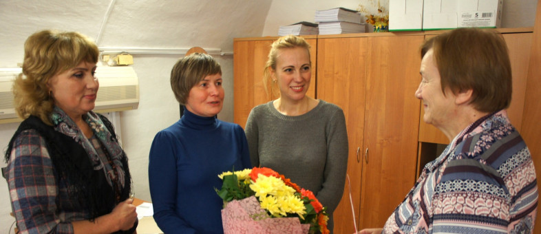 С 70-летием М.М. Кузьмину поздравили прямо на её рабочем месте – в кабинете, который находится на втором этаже Братских келий XVII века. Вот уже несколько лет бухгалтерия Кирилло-Белозерского музея-заповедника находится в этом здании. «Вид из окна чудесный! – радуется Маргарита Михайловна. – Видно всю Соборную площадь! Архимандричьи кельи! Колокольню! Успенский собор с приделами! Трапезную палату!»
