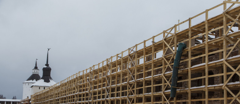 Специалисты сообщают: в настоящее время на прясле стен от Вологодской до Кузнечной башни ведутся подготовительные мероприятия – устанавливаются деревянные строительные леса.