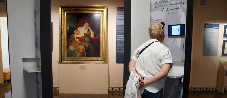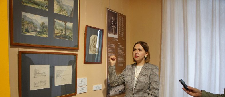Особый интерес представляют портреты писателей. «Во-первых, это прижизненный портрет Батюшкова времени его пребывания в Вологде, сделанный с натуры. На его обороте можно увидеть портрет девушки (он также представлен на выставке). Возможно, неизвестный нам художник применил хитрость – делал вид, что рисует племянницу Гревенса, а на самом деле переворачивал лист и одновременно делал портрет Константина Николаевича, – рассказывает Людмила Мисайлиди. – А, во-вторых, акварельный портрет Батюшкова, который был сделан с этого крошечного эскиза, из фонда Государственного музея истории российской литературы имени В.Т. Даля (Москва). Именно по этой акварели (она принадлежала сестре Батюшкова, а та подарила ее племяннику Константина Николаевича – Гревенсу) были сделаны живописные портреты. К этому же периоду относится другой портрет – Батюшков со спины – художника Берга. Он также выполнен в 1847 году и выставлен в Народном доме».