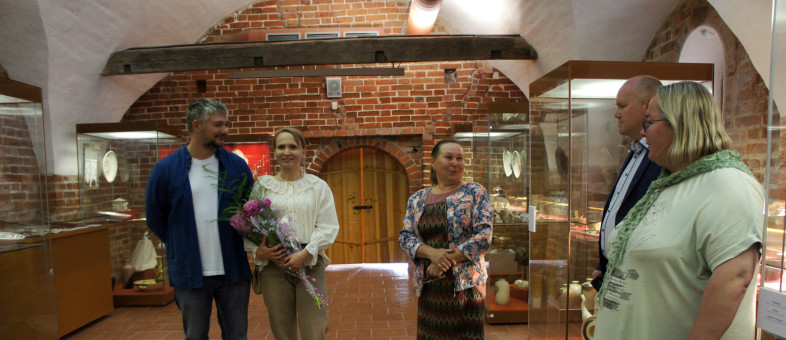 Заведующая экспозиционно-выставочным отделом музея Юлия Лебедева отметила, в этом году Сергей и Анастасия Нуриджанян отмечают 10-летний юбилей гончарной деятельности и семейной жизни. Супруги вместе основали мастерскую «СеверАрт35» и к 2025 году изготовили более 60 000 оригинальных изделий. Среди них – керамические здания, панно, ювелирные изделия, глиняная посуда, предметы интерьера…