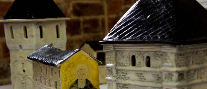 «Мы пошли дальше, – рассказывает Анастасия Нуриджанян. – К открытию выставки в единственном федеральном музее Вологодчины подготовили вологодские храмы и церкви. Здесь можете увидеть Софийский собор и Введенскую церковь. Над последним экспонатом для выставки «Созвучие глины» я закончила работать сегодня утром и привезла его к официальному открытию проекта прямо из печки – это крепостные стены Спасо-Прилуцкого монастыря. На создание керамических прясел ушел месяц. Здесь вы увидите и мой авторский почерк – стены я расписала фресками с образами святого Дмитрия Прилуцкого и архангела Гавриила».