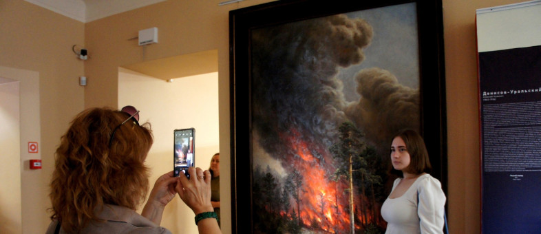 Самым зрелищным полотном уникальной экспозиции стал большой холст Алексея Денисова-Уральского «Лесной пожар» 1897 года, в котором с большой достоверностью показаны все нюансы гибнущего живого леса. Этот живописный экспонат приковывал к себе взгляды и детей, и взрослых. Сотрудники музея установили для него специальный свет таким образом, что подсвечено не все полотно, а освещен только огонь, благодаря которому пылает весь огромный холст!