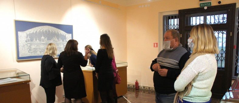 Всероссийская акция "Ночь искусств-2020 в Кирилло-Белозерском музее-заповеднике началась с обзорных экскурсий по ансамблю монастыря и открытия выставки одного экспоната в Народном доме.