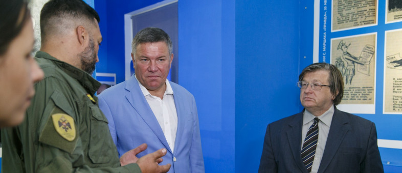 Рассказ о жизни и подвигах великого земляка, Героя Советского Союза вёл генеральный директор Музея Михаил Шаромазов, который вниманию губернатора представил пять залов Народного дома, посвящённых лётчикам – уроженцам Кирилловского района, участникам войны, конструкторам авиационной техники и авиационного вооружения.