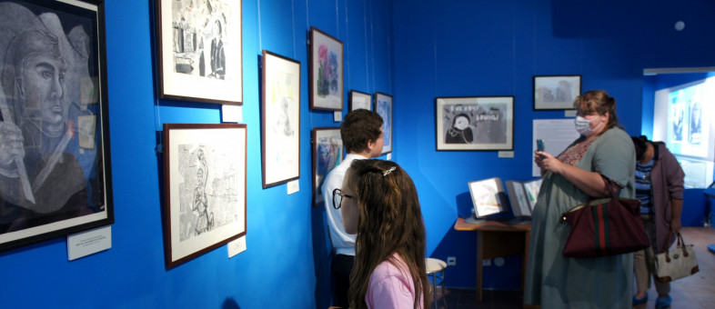 Художественные работы выполнены в разных техниках и жанрах с использованием гуаши, карандашей, восковых мелков, туши, фломастеров.