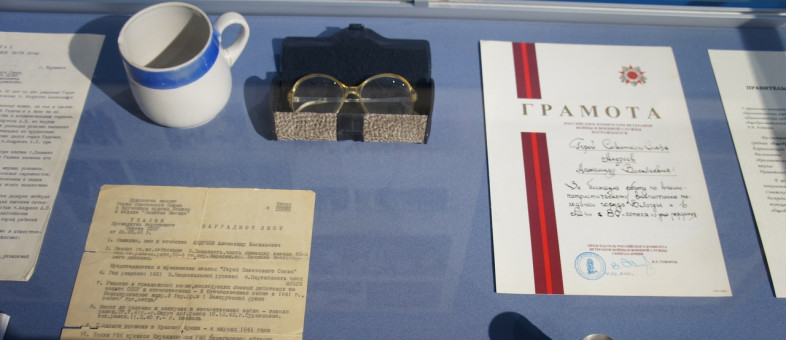Вологодский областной архив новейшей политической истории предоставил копии документов А.В. Андреева (подлинные хранятся в фондах архива) – характеристику, послужные списки, автобиографии, грамоты, фотографии, памятный альбом – что позволило дополнить выставку новыми материалами о жизненном пути Героя.