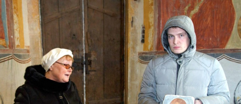 Гости и сотрудники музея посмотрели отрывок из фильма «Хранители» вологодского режиссера и искусствоведа Е.Б. Савиной. На кинохронике запечатлены моменты, ставшие историей: вручение сертификата ЮНЕСКО Г.О. Ивановой (директору Кирилло-Белозерского музея) и М.С. Серебряковой (директору Музея фресок Дионисия), интервью с автором методики консервации стенописи О.В. Лелековой, записанное в период работ в Ферапонтовом монастыре.