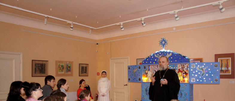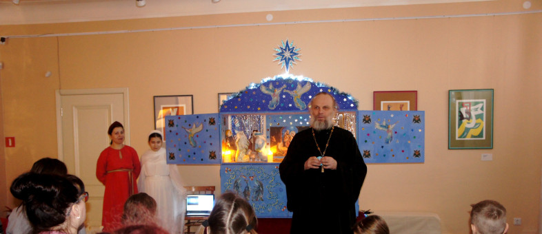 «Сегодня, седьмого января, все православные празднуют один из главных христианских праздников, посвящённый рождению во плоти Иисуса Христа от Девы Марии. Рождение Спасителя описано в Евангелиях от Матфея и Луки. Согласно Писанию, Дева Мария и праведный Иосиф, повинуясь указу о переписи, отправились в Вифлеем. Переполненный город не смог принять Святое Семейство, и им пришлось найти приют в скромной пещере-вертепе, куда пастухи загоняли скот. Именно здесь, в этой простой и лишённой всякой роскоши обстановке, чудесным образом, безболезненно родился Тот, Кому суждено было стать Царём Небесным. Первыми свидетелями великой радости стали простые вифлеемские пастухи, которым Ангел возвестил благую весть, и небо воспело хвалу Господу. Именно эту историю посредством театрального действа представили зрителю сотрудники музея, – сообщает генеральный директор Кирилло-Белозерского музея-заповедника Юлия Веретнова. – К Рождеству мы готовились заранее. Специально для вертепного действа силами службы по сохранению и содержанию объектов культурного наследия был изготовлен макет рождественского вертепа (двухэтажный деревянный домик с прорезями для вождений кукол), который был расписан под началом руководителя Воскресной школы Кирилло-Белозерского мужского монастыря Татьяны Валентиновны Люшиной; в создании кукол принимали участие сотрудники отдела по работе с посетителями, в частности, Татьяна Борисовна Смирнова, и отдел культурного сохранения; экскурсоводы помогали в озвучке персонажей. В итоге получился полноценный кукольный спектакль, который в рождественские дни был показан два раза».