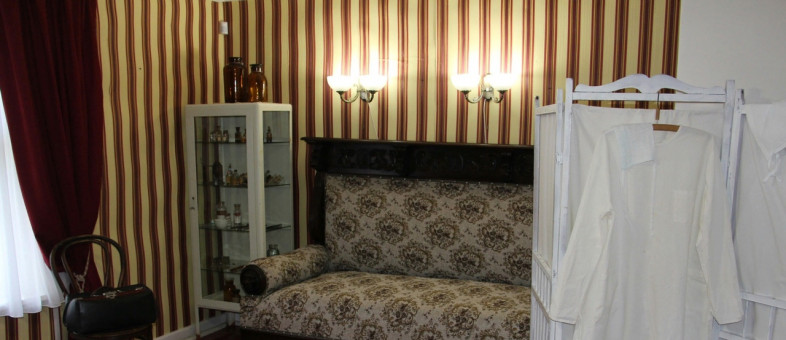 Сейчас интерьер комнаты врача украшают предметы мебели конца XIX – начала ХХ века. Важное место занимает книжный шкаф с застекленными полками, на которых находятся книги по медицине, в том числе – многотомная «Реальная энциклопедия практической медицины», переведённая с немецкого и изданная в Санкт-Петербурге в 1912 году».