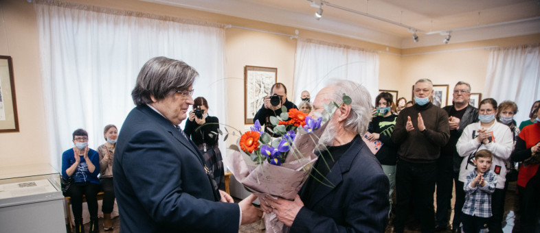 Поздравить известного художника с открытием грандиозной выставки графики, на которой представлено более 200 работ (станковые гравюры, рисунки, акварель, экслибрисы, портреты, книжные иллюстрации разных лет создания), пожелали многие.