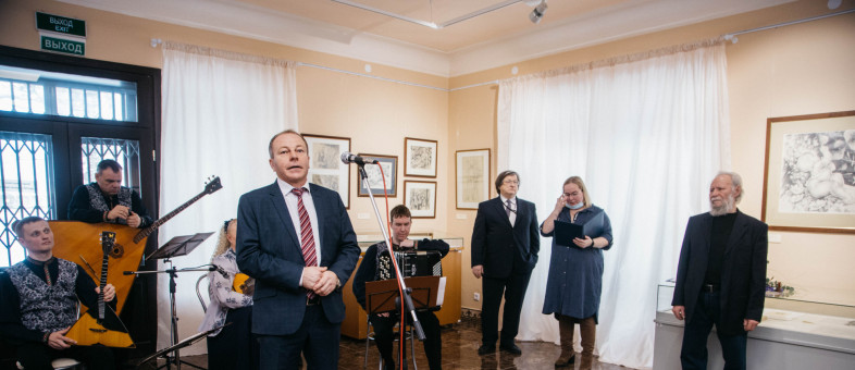 В выставочном комплексе Кирилло-Белозерского музея-заповедника - Народном доме - при личном участии члена Союза художников России, заслуженного художника РСФСР Владислава Сергеева под звуки музыки Губернаторского оркестра русских народных инструментов (руководитель Марина Горбачёва) сегодня состоялось официальное открытие выставки графики "Тихая моя Родина".