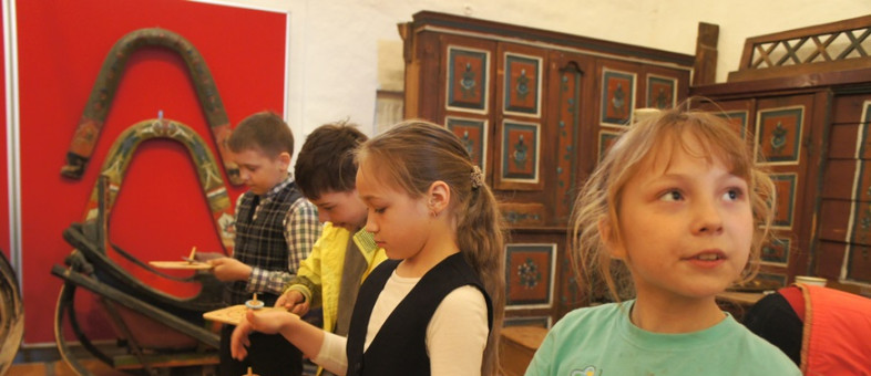 Развлекательная программа ждала школьников в Поварне, в экспозиции «Народное искусство Белозерья». Там они узнали об игрушках, которыми играли дети в XIX веке. Что такое «закидушка», «накидушка» и «фурчалка» после интерактива знал каждый ребёнок. И не только в теории, но и на практике: поиграть ими удалось всем.