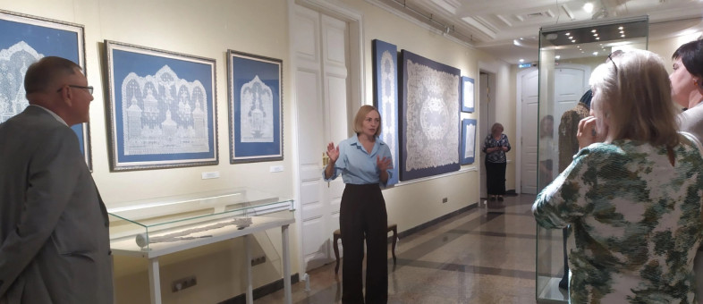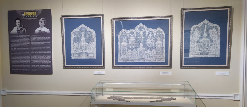 Среди них работы Заслуженных художниц России Галины Мамровской и Ангелины Ракчеевой, а также мастериц кружевоплетения Надежды Веселовой, Марины Пальниковой, Татьяны Смирновой и другие.