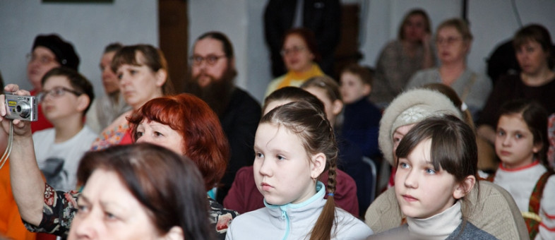 Не менее интересна и познавательна была вторая часть утренника, где коллектив Воскресной школы представил театральную постановку «Всему час Божий». Режиссёр-постановщик Т.В. Люшина своей работой заставила задуматься о многих нравственных вопросах. Наконец-то мы узнали, почему у людей всё хорошее не ладится. Так точно об этом ещё не говорил никто: «Потому что люди не знают, какое время дороже всех. Какой человек дороже всех. Какое дело дороже всех». Но и тут всё довольно просто. Молодые артисты, участвующие в постановке, рассудили всех: «Дороже всех время, которое теперь. Только им человек распорядиться может. Дороже всех человек, с которым в этот час дело имеешь. А дело дороже всех, которое с добром для этого человека сделать можешь, чтоб он рад остался».