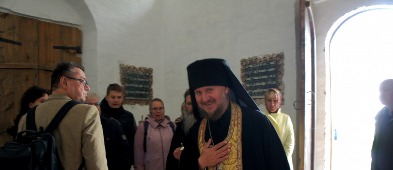 Именно в этой церкви по традиции перед проведением конференции прошла лития на могиле князя Михаила Воротынского. Службу о поминовении души великого полководца, героя взятия Казани и битвы при Молодях, в Кириллове провел наместник Кирилло-Белозерского монастыря игумен Анастасий (Додарчук).
