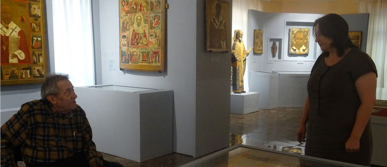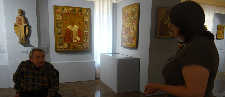 Н.В. Каменев – главный специалист ГУП ЦНРПМ, Заслуженный деятель искусств РФ, Академик Академии Архитектурного Наследия, Лауреат конкурса МСА «Золотое сечение», Почетный член Союза реставраторов России, Член Союза архитекторов России. Николай Владимирович признался, что в этот приезд хотел и посетил выставку «Николай Угодник», своего патронального святого, в выставочном комплексе Кирилло-Белозерского музея-заповедника – Народном доме. Сотрудник научного отдела Елена Щурина рассказала о представленных музеями и коллекционерами экспонатах. Встретился с Генеральным директором музея – заповедника М.Н. Шаромазовым.
