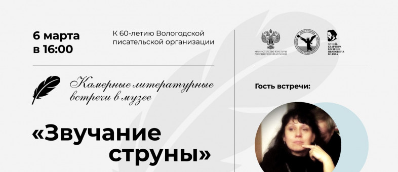 Филиал Кирилло-Белозерского музея-заповедника – Музей-квартира В.И. Белова – продолжает «Камерные литературные встречи», посвящённые 60-летию регионального отделения Союза писателей России. Новым гостем проекта станет вологодская поэтесса, кандидат филологических наук Инга Чурбанова.