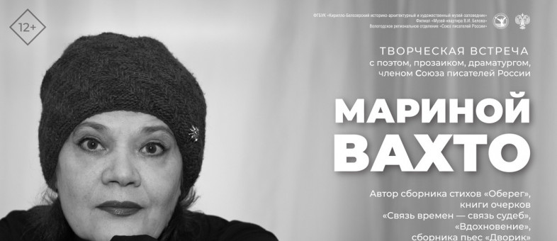 Филиал Кирилло-Белозерского музея-заповедника «Музей-квартира В.И. Белова» 11 июня приглашает на творческую встречу с поэтом, прозаиком, драматургом, членом Союза писателей России Мариной Вахто (Архангельская область).
