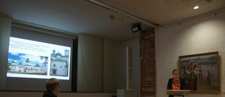 Основную часть конференции открыла заведующая научным отделом музея Людмила Теребова. Она рассказала присутствующим об интерьере церкви святого равноапостольного князя Владимира на основе описи Кирилло-Белозерского монастыря 1601-1668 гг.