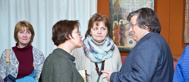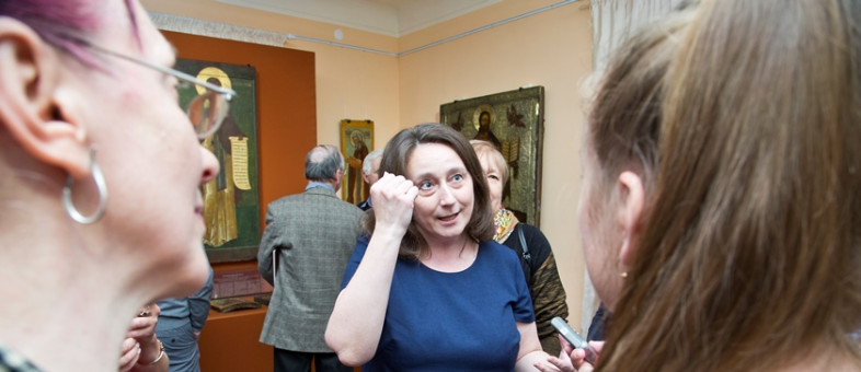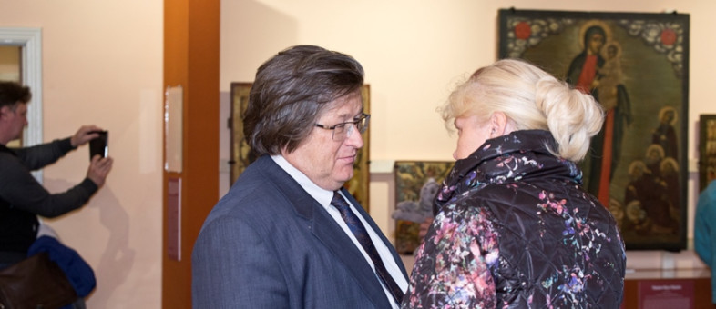 В выставочном комплексе Кирилло-Белозерского музея-заповедника – Народном доме состоялось официальное открытие выставки «Преподобный Кирилл Белозерский и редкие варианты иконографии». Приветствуя представителей музеев, искусствоведов и коллекционеров, директор музея-заповедника Михаил Николаевич Шаромазов отметил: «Ещё в прошлом году мы вместе с вами определили темы выставки редкой иконографии, где ведущей стала тема образа преподобного Кирилла Белозерского. Сегодня здесь присутствуют участники из десяти музеев (семи государственных и трёх частных), а также – коллекционеры. Организация выставки – это всегда огромный труд и ответственность. За работу по монтажу всех выставок хочется выразить слова благодарности хранителю иконописи Вологодского музея-заповедника Елене Анатольевне Виноградовой и научному сотруднику Кирилло-Белозерского музея-заповедника Елене Геннадьевне Щуриной. Каталог выставки появится к июню следующего года».