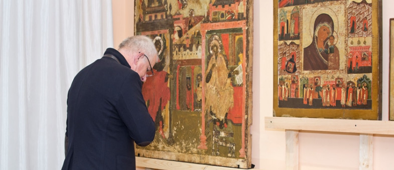 «Из моей личной коллекции здесь представлено четыре предмета, - рассказал коллекционер Александр Липницкий. – Среди них две очень редкие иконы собраний ушедшего от нас знаменитого коллекционера Михаила де Буар Елизаветина. Впервые иконы из его коллекции представлены на Вологодчине».