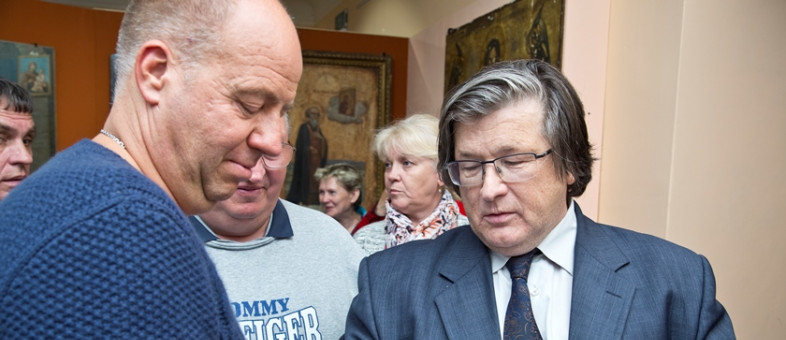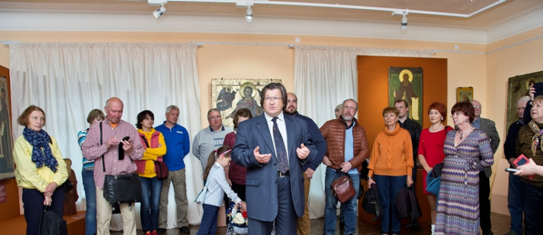 Директор Кирилло-Белозерского музея-заповедника М.Н. Шаромазов выставку редкой иконографии, посвящённую образу преподобного Кирилла Белозерского, открыл в день памяти святого - 22 июня.