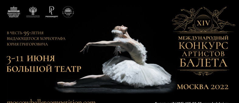 XIV Международный конкурс артистов балета будет проходить с 3 по 11 июня 2022 года в Москве на сцене Государственного академического Большого театра России. Конкурс посвящен 95-летию художественного руководителя и председателя жюри - народному артисту СССР, хореографу Большого театра России Юрию Николаевичу Григоровичу.