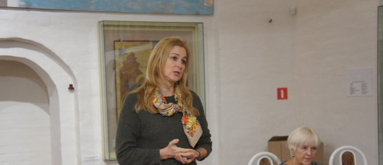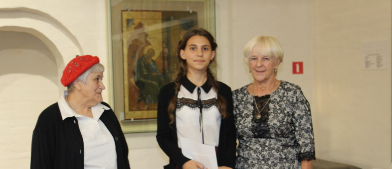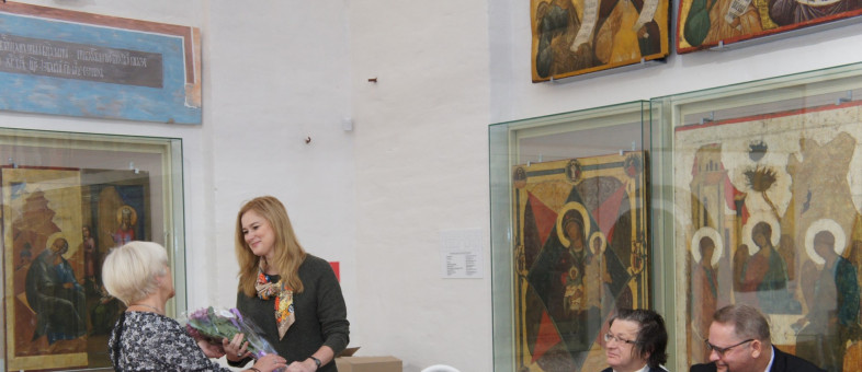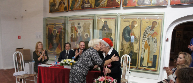 Цветы Марина Сергеевна принимала в зале Трапезной палаты Музея фресок Дионисия, в зале, полном её учеников и последователей, от чего мероприятие принимало ещё большую значимость.