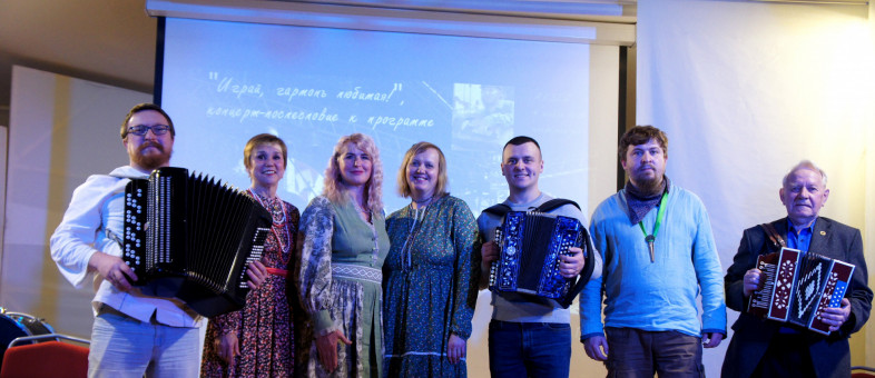 С восторгом зрители встретили самобытного череповецкого баяниста Алексея Щербинина, дуэт «СВАТЫ», гармонистов из Белозерска Алексея Александрова и Александра Смирнова.