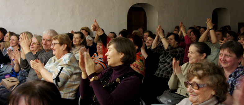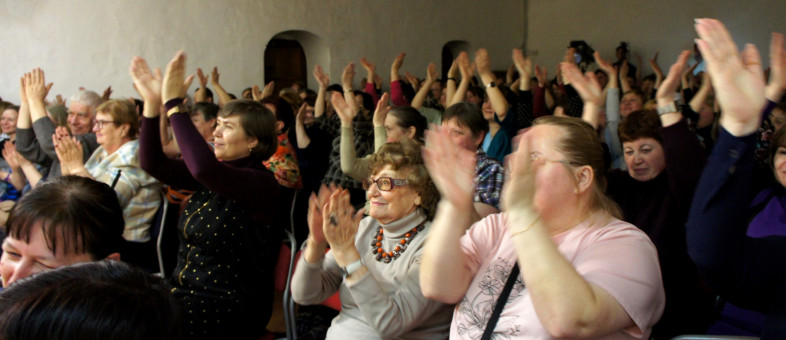 Кстати, про шутки – в Кириллове от Вашукова их было полным-полно! Зал разрывался от смеха и рукоплескал артисту. Вместе с Михаилом публика пела, смеялась, пританцовывала и соглашалась с правдой жизни. Обсуждали жкх, зарплату, цены, семейные ценности и нормы морали. И всё было настолько весело, легко и поучительно, что аплодисменты выстреливали залпами! Артист даже на ходу придумал частушку на кирилловскую тематику. Гости оценили.