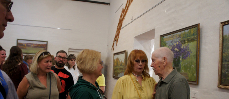 Выставку живописи и графики Заслуженного художника России Евгения Соколова «Светлее грусть, когда цветут цветы» открыли в залах Казенной палаты Кирилло-Белозерского монастыря. В официальном мероприятии принял личное участие сам живописец. В этом году он отметил 88 лет.