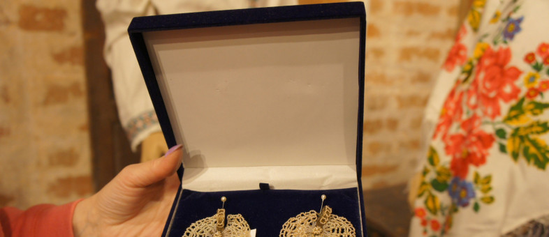 Особого внимания на выставке «Женский костюм. Детали» заслуживают женские украшения. «Мы привезли в Сольвычегодск эксклюзивные жемчужные серьги и бусы, считавшиеся ранее одними из самых дорогих украшений женского костюма на Русском Севере, – рассказывает заместитель генерального директора Кирилло-Белозерского музея-заповедника по хранению Светлана Смирнова. – Именно они пользовались большой популярностью и вносили в образ элемент роскоши и щегольства. Серьги надевались с праздничным костюмом, состоявшим из рубахи, шелкового, парчового, бархатного сарафана, нарядной душегреи, венца или кокошника, украшенных жемчугом, бисером. Размер сережек и материал, из которого они были сделаны (жемчуг или бисер), зависел от благосостояния крестьянки.