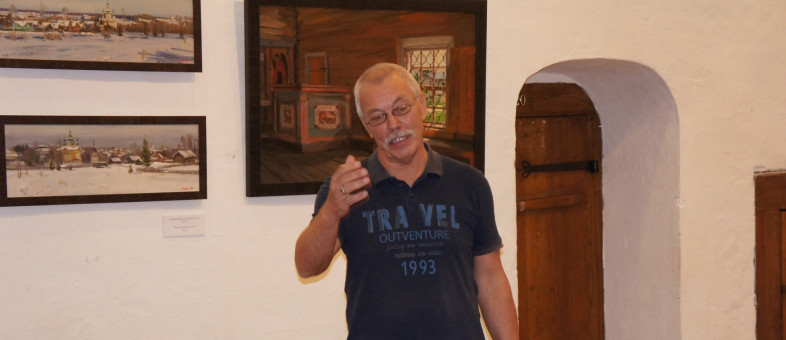 В Кирилло-Белозерском музее-заповеднике сегодня состоялось официальное открытие выставки вологодского живописца, члена Союза художников РФ Евгения Молева «Над Русью облака».