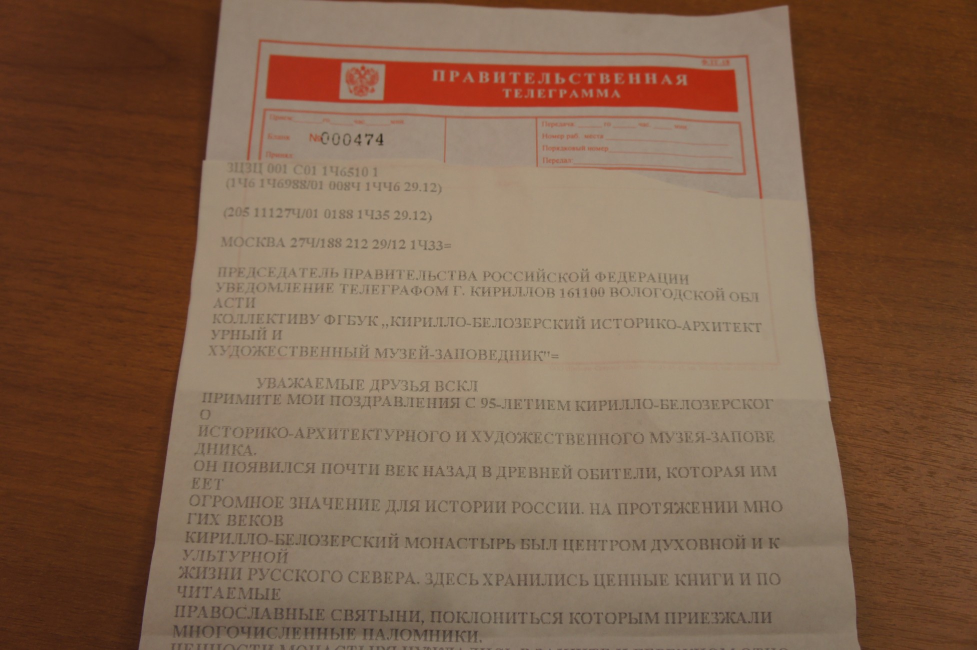 Юбилейный год для Кирилло-Белозерского музея-заповедника начался с поздравления Председателя Правительства Российской Федерации Дмитрия Анатольевича Медведева 09 января 2019