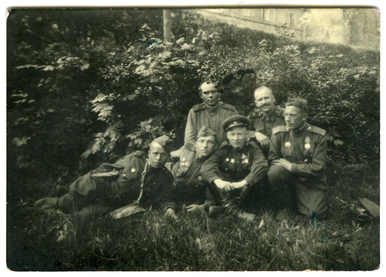 А.Н. Ершов 9.05.45 А.П. Доронина февраль 1945 А.С. Кочнев (1-й слева) 2.05.45 А.Ф. Мусоров. 9.05.45 И.М.Нетленнов (в центре) с боевыми товарищами. Июль 1945 года