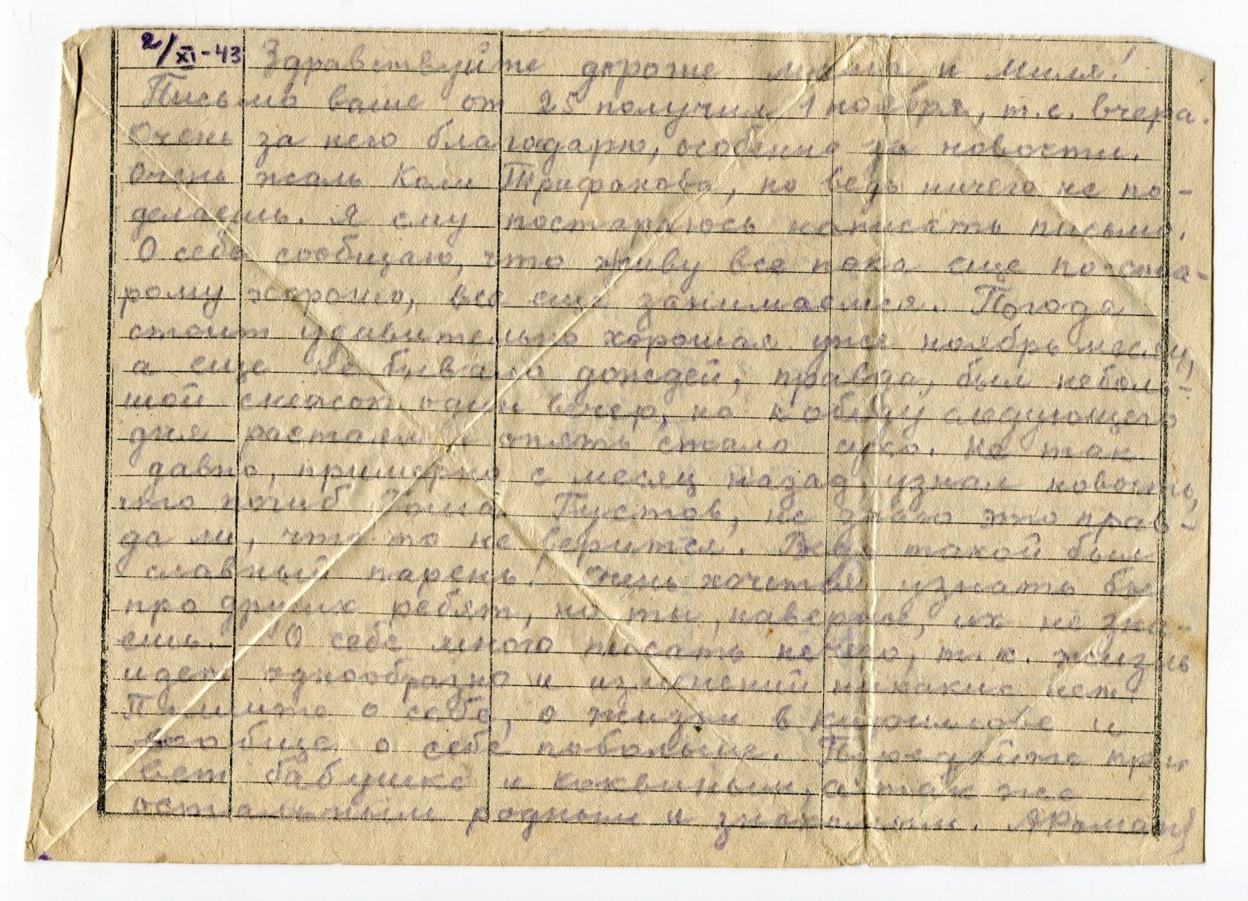 Письмо А.И. Романова родным. 02.11.1943