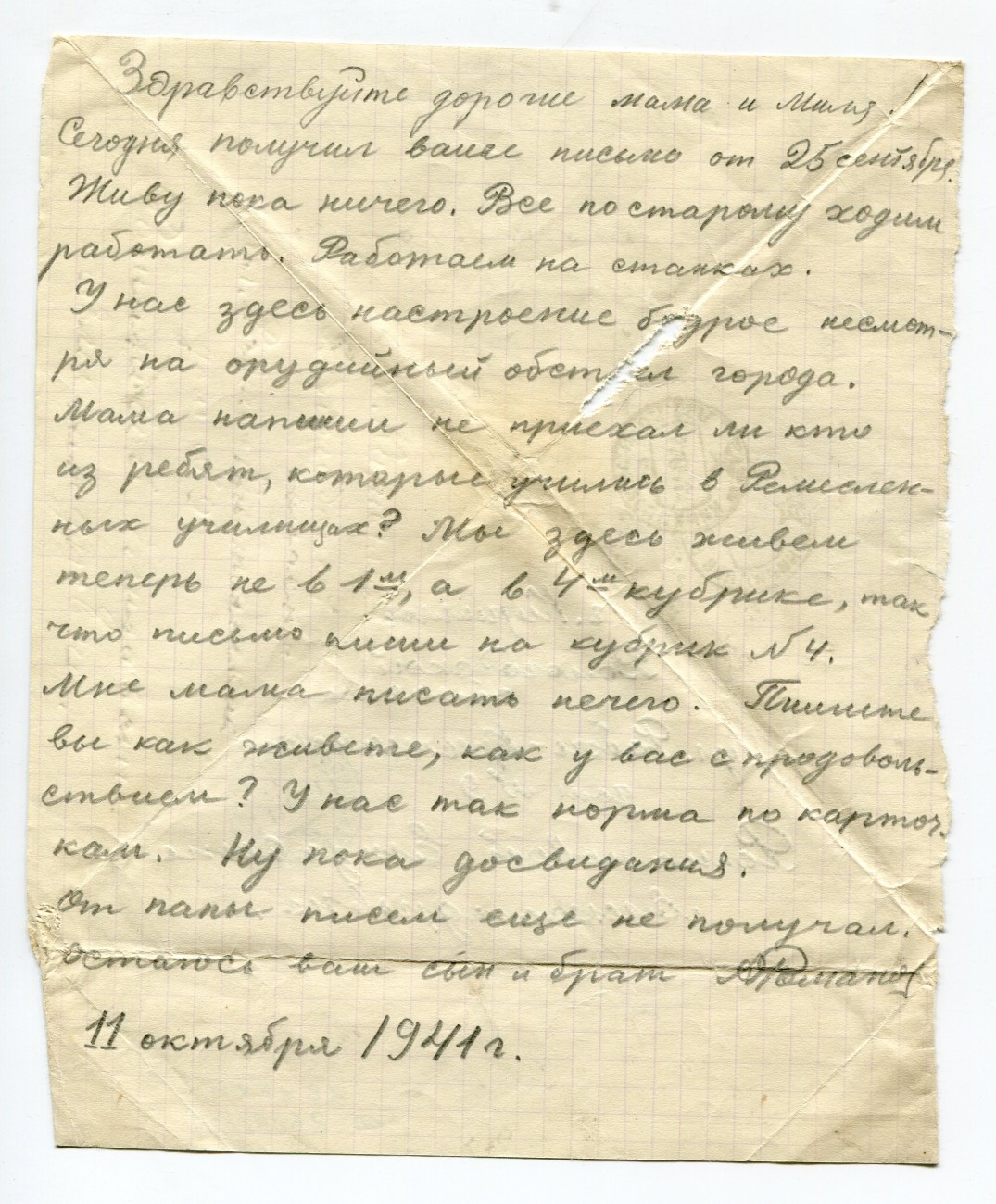 Письмо А.И. Романова родным. 11.10.1941
