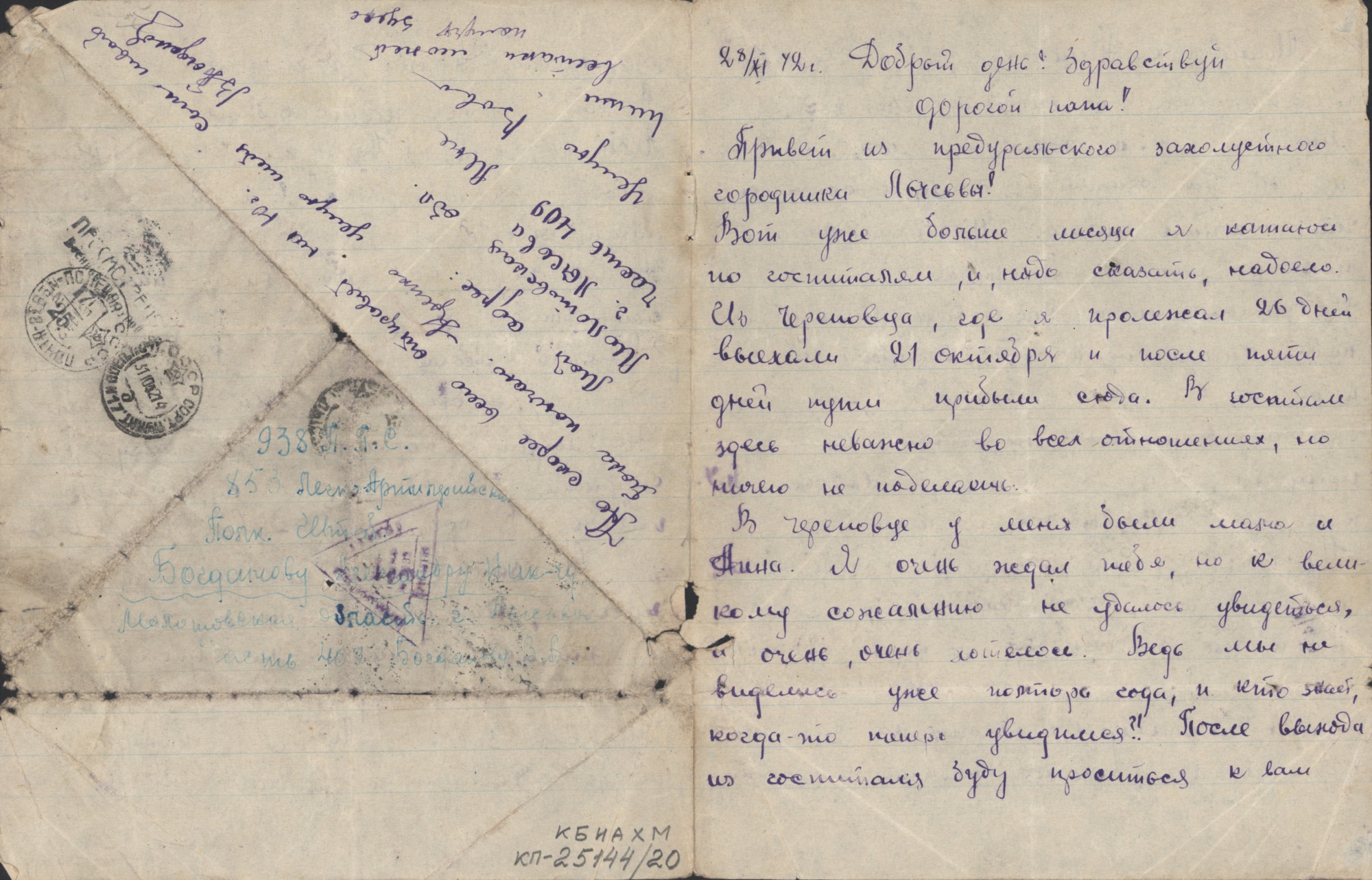 Письмо В.А. Богданова отцу. 28.11.1942 (1)