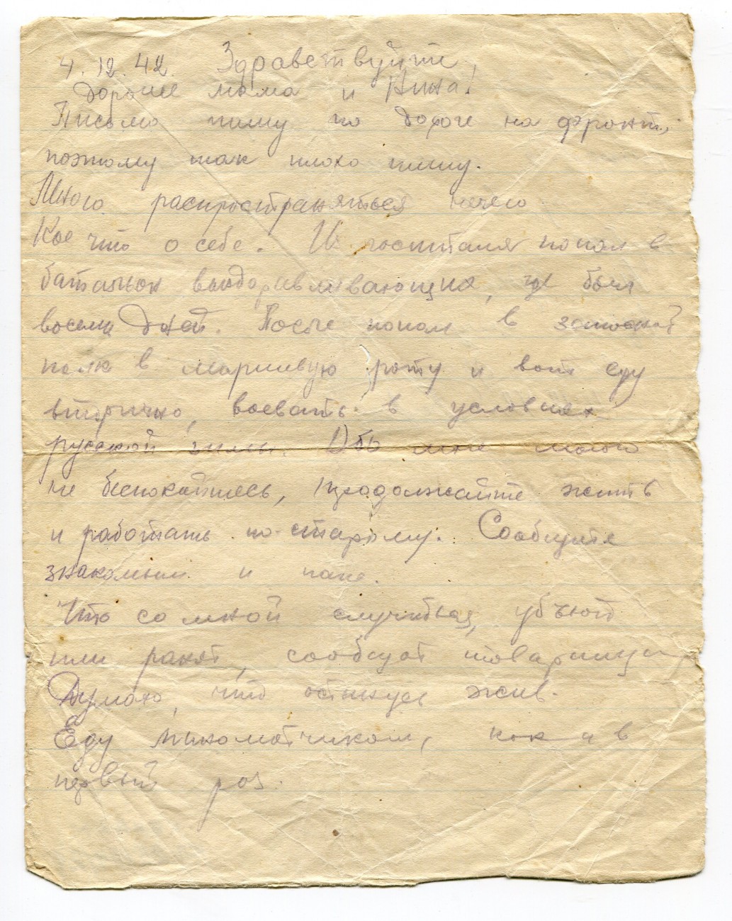 Письмо В.А. Богданова родным. 04.12.1942
