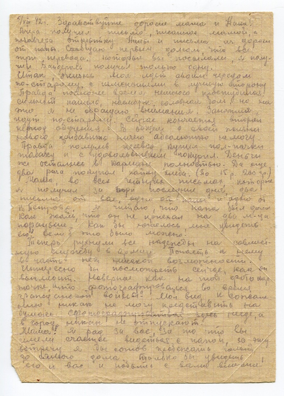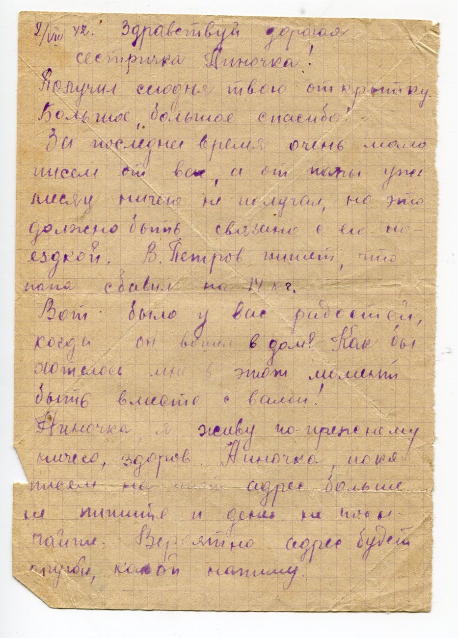 Письмо В.А. Богданова родным. 15.05.1942