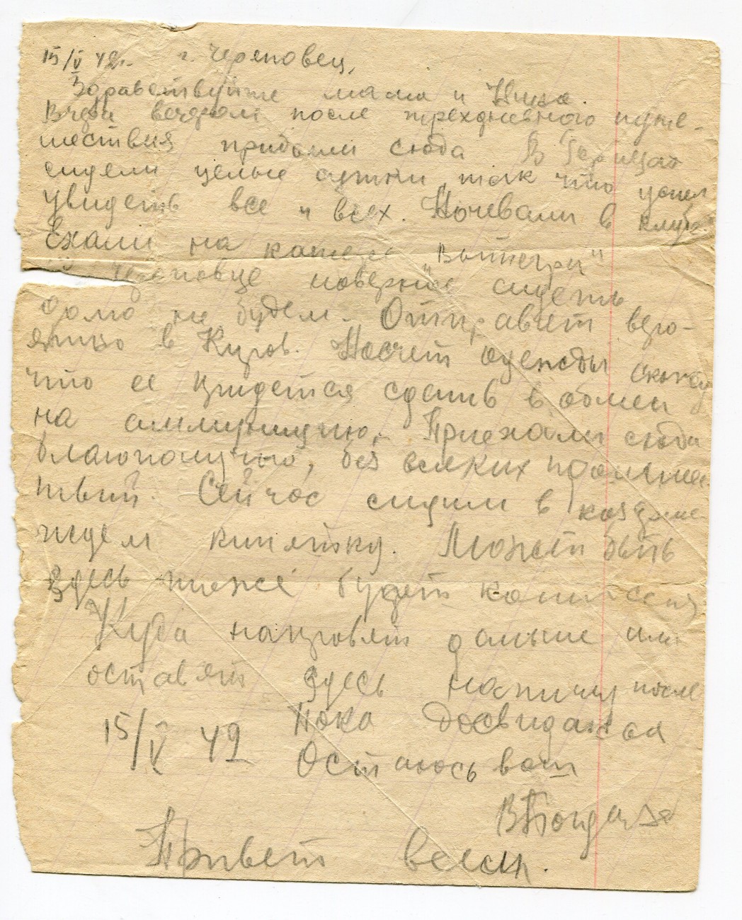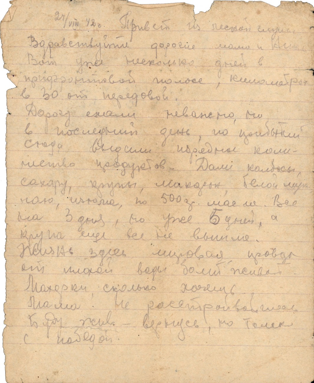 Письмо В.А. Богданова родным. 15.08.1942