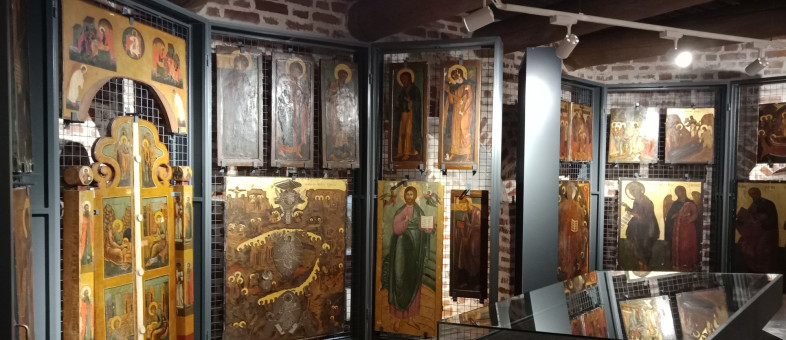 Экскурсия проводится в помещениях Вологодской башни. Это самая первая башня крепости Нового города, построенная за один строительный сезон с апреля по август 1656 года. Вы узнаете особенности устройства башни. На четырех ярусах башни размещается открытое фондохранилище коллекции древнерусской живописи Кирилло-Белозерского музея-заповедника. Хранитель познакомит вас с большей частью коллекции иконописи музея. Вы увидите копии икон иконостаса 1497 года Успенского собора Кирилло-Белозерского монастыря, выполненные художниками-копиистами ГосНИИР, иконы XVI–XIX веков из церквей Кирилло-Белозерского монастыря, близлежащих обителей и приходских церквей, копии фресок Феофана Грека, Андрея Рублева, Дионисия и других мастеров, выполненные художником-копиистом Н.В. Гусевым. Вам также расскажут о реставрации предметов и особенностях их хранения. На пятом ярусе Вологодской башни Вы сможете полюбоваться видом на монастырский ансамбль, Сиверское озеро и окрестности города Кириллова.